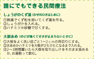 寒気がしたり、鼻水が出てきたりしたら、温かいスープや味噌汁など、じわっとした汗をかく食事や入浴をしましょう。